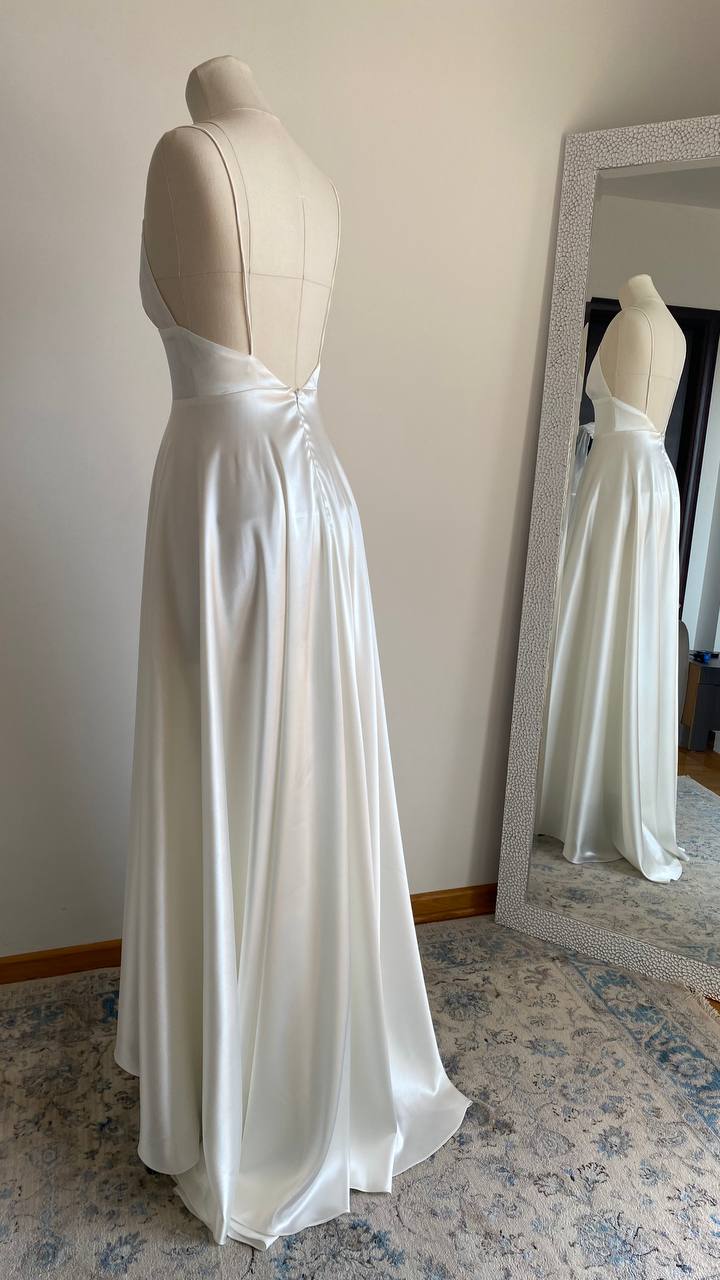 This simple silk satin wedding dress is the perfect blend of elegance and modern minimalism. Designed for the confident bride, it features a sleek silhouette that flatters every curve — making it an ideal choice for a minimalist wedding, romantic elopement, or an intimate celebration. With its understated charm and touch of sensuality, this sexy wedding dress offers timeless beauty for your special day.